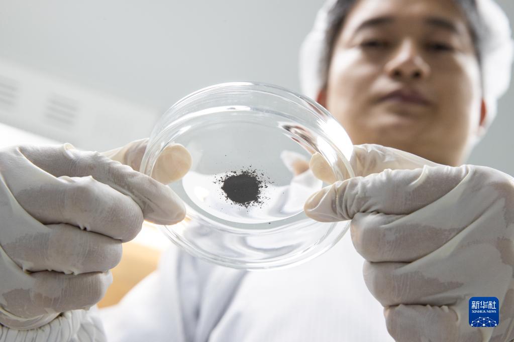 在中科院地質與地球物理研究所月球樣品潔凈室,田恒次副研究員在處理月球樣品(2021年10月15日攝)。新華社記者 金立旺 攝