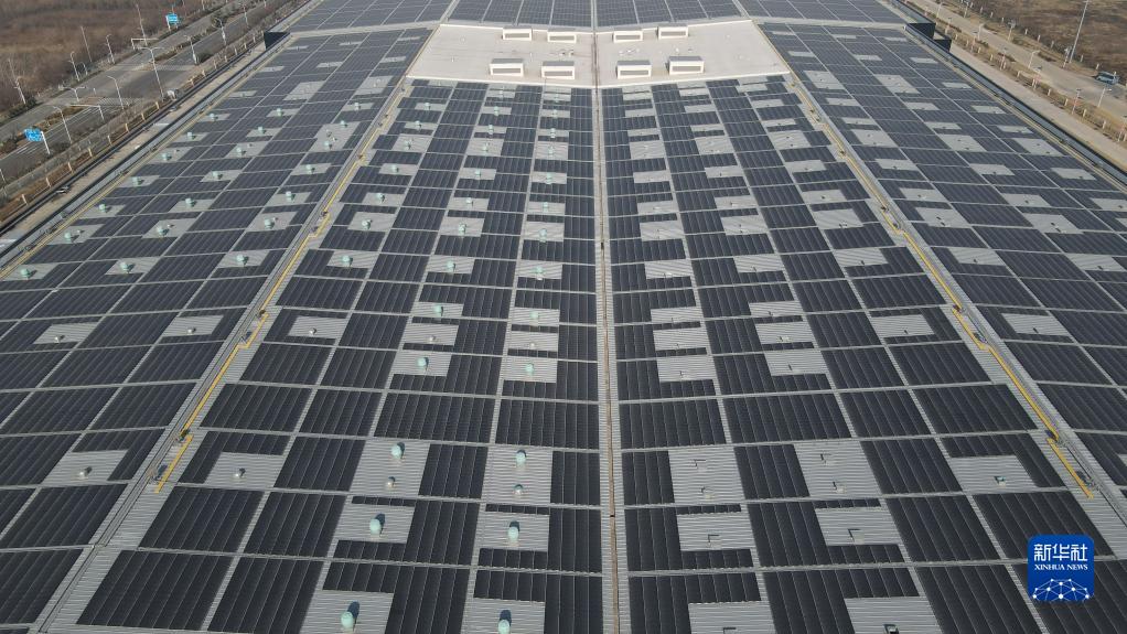 這是位于蚌埠中光電科技有限公司內的薄膜光伏建筑一體化應用示范項目(2021年12月21日攝,無人機照片)。新華社記者 張端 攝