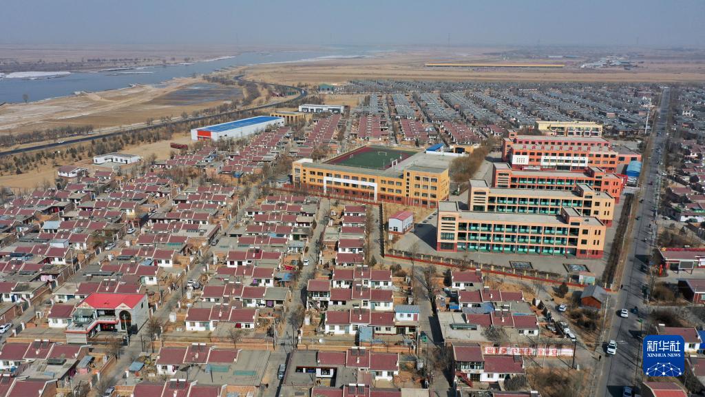 寧夏銀川市興慶區月牙湖鄉濱河家園移民村(無人機照片,2021年2月11日攝)。新華社記者 王鵬 攝