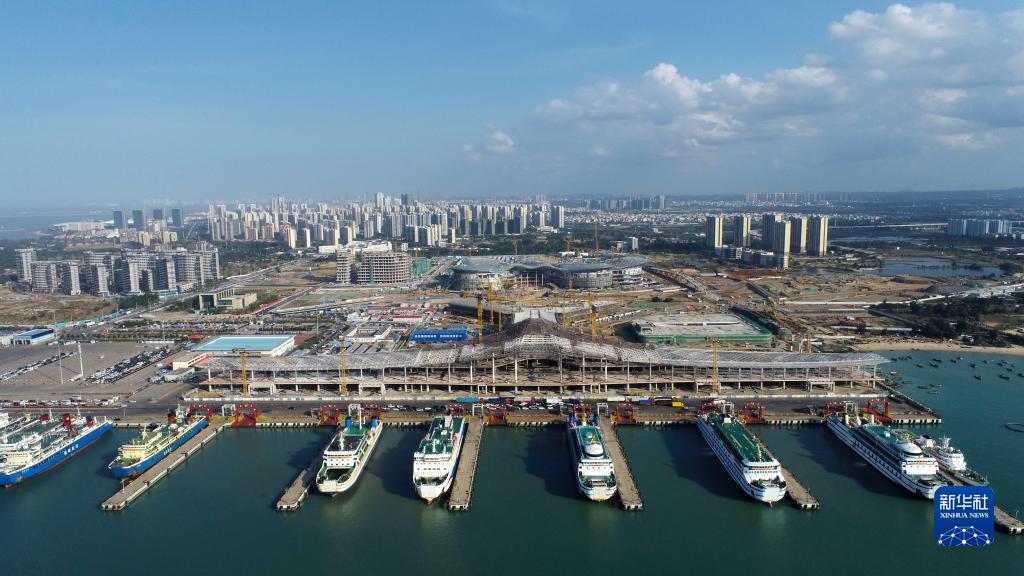 這是2022年2月11日拍攝的海口新海港客運綜合樞紐項目施工現場(無人機照片)。新華社發(黎多江 攝)