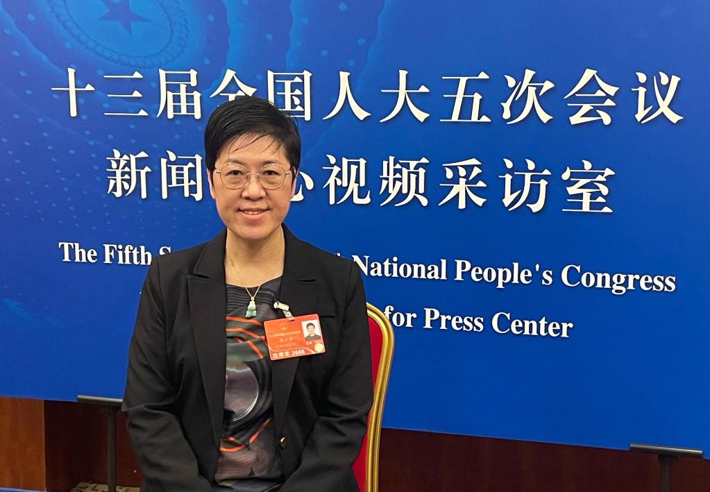 澳區(qū)全國(guó)人大代表、澳門(mén)街坊總會(huì)理事長(zhǎng)吳小麗。新華社記者 陳舒 攝