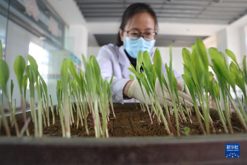 在遼寧東亞種業(yè)有限公司種子質(zhì)量檢測(cè)中心,工作人員查看玉米種子發(fā)芽實(shí)驗(yàn)結(jié)果(2020年3月16日攝)。新華社記者 楊青 攝