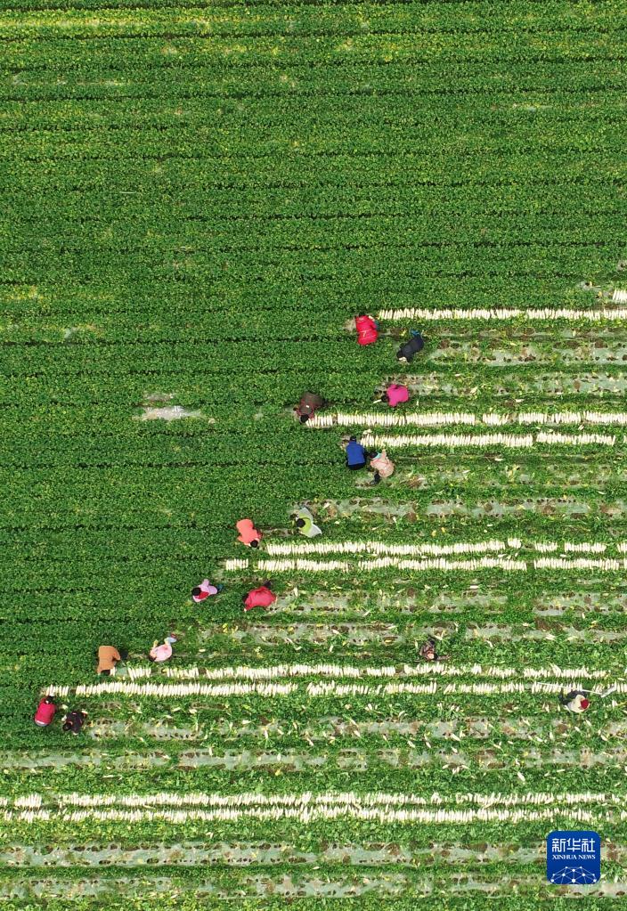 2月28日,在四川省南充市蓬安縣錦屏鎮(zhèn)中壩社區(qū),村民在地里勞作(無(wú)人機(jī)照片)。新華社發(fā)(劉永紅 攝)