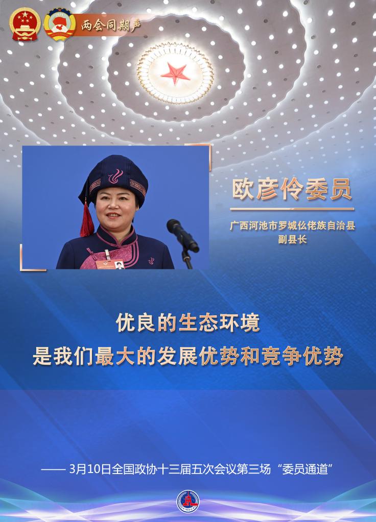 談到鞏固拓展脫貧攻堅成果和全面推進鄉村振興,來自廣西羅城仫佬族自治縣的歐彥伶委員信心滿滿:“優良的生態環境是我們最大的發展優勢和競爭優勢。”