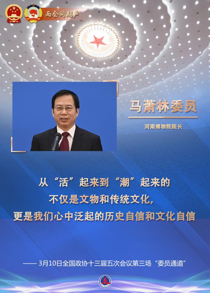 河南博物院院長馬蕭林委員說,這些成功的案例,得益于“深挖內涵”“創新表達”“科技賦能”。“從‘活’起來到‘潮’起來的不僅是文物和傳統文化,更是我們心中泛起的歷史自信和文化自信。”