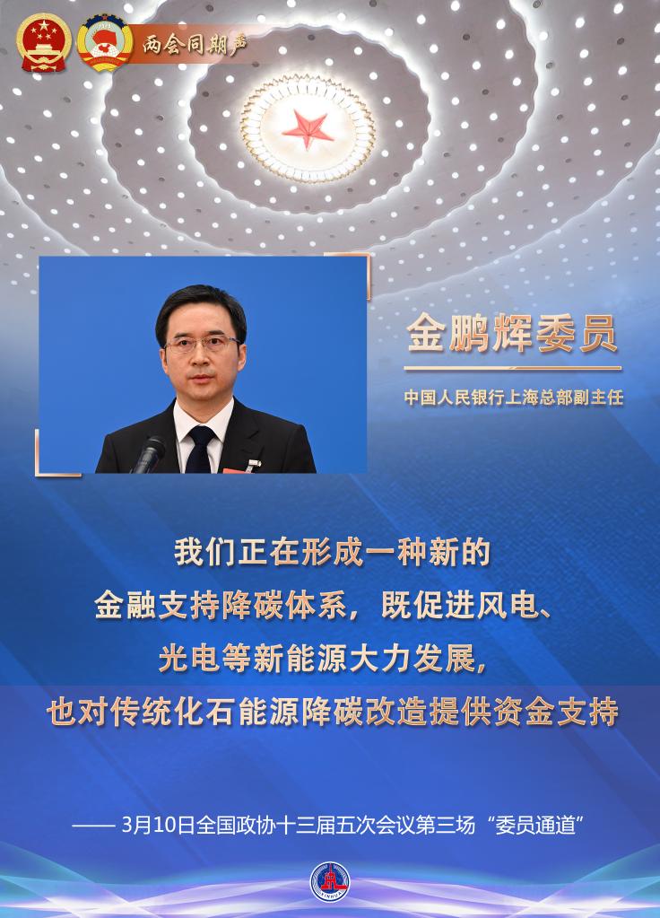 “我們正在形成一種新的金融支持降碳體系,既促進風電、光電等新能源大力發展,也對傳統化石能源降碳改造提供資金支持。”中國人民銀行上海總部副主任金鵬輝委員說。
