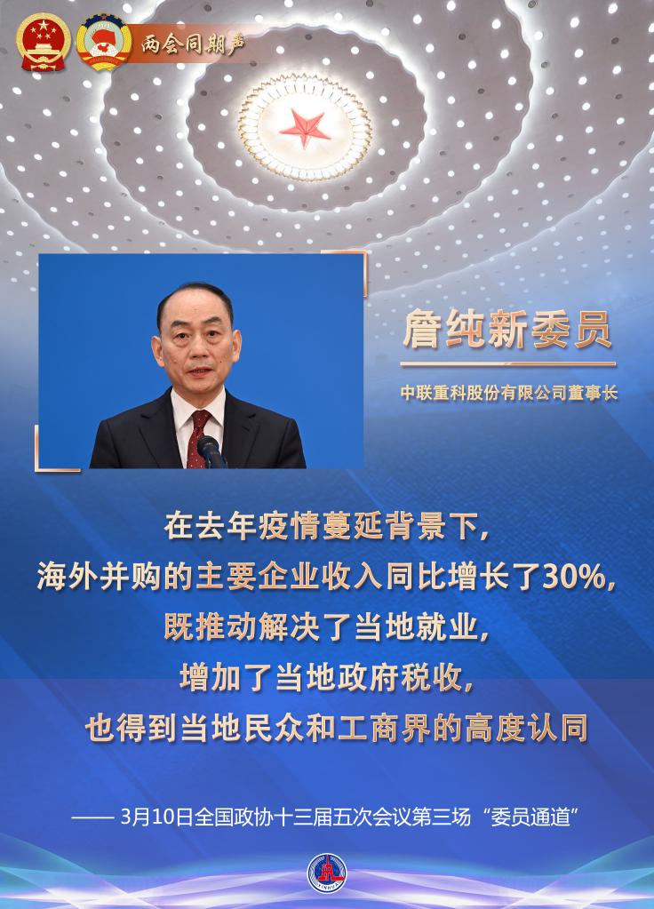 “我們在海外先后并購了6家企業。并購后我們沒有裁員,沒有更替管理團隊。但是大到企業戰略預算,小到文具紙張的成本,都納入我們管理體系中。”詹純新欣慰地說,在去年疫情蔓延背景下,海外并購的主要企業收入同比增長了30%,既推動解決了當地就業,增加了當地政府稅收,也得到當地民眾和工商界的高度認同。