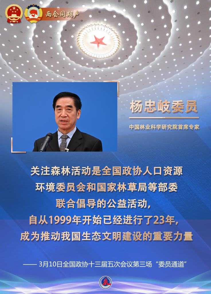 “關注森林活動是全國政協人口資源環境委員會和國家林草局等部委聯合倡導的公益活動,自從1999年開始已經進行了23年,成為推動我國生態文明建設的重要力量。”中國林業科學研究院首席專家楊忠岐委員說。