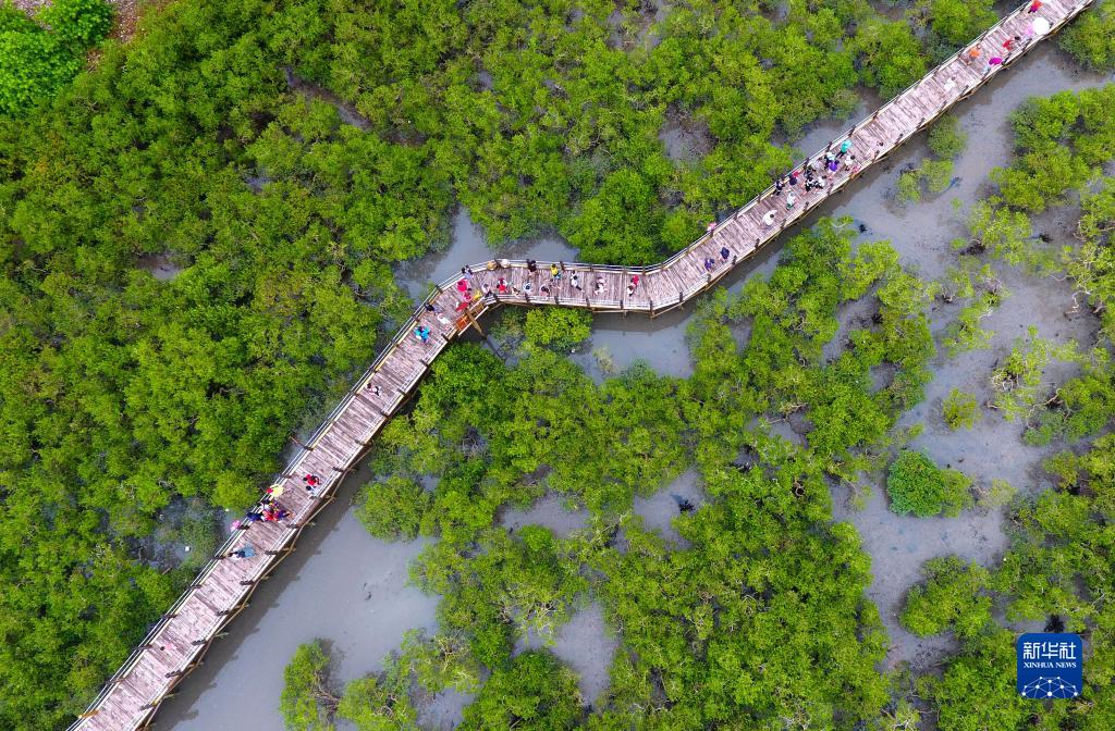 這是在廣西北海市金海灣紅樹林生態(tài)休閑區(qū)拍攝的紅樹林(2017年8月23日攝,無(wú)人機(jī)照片)。新華社記者 黃孝邦 攝