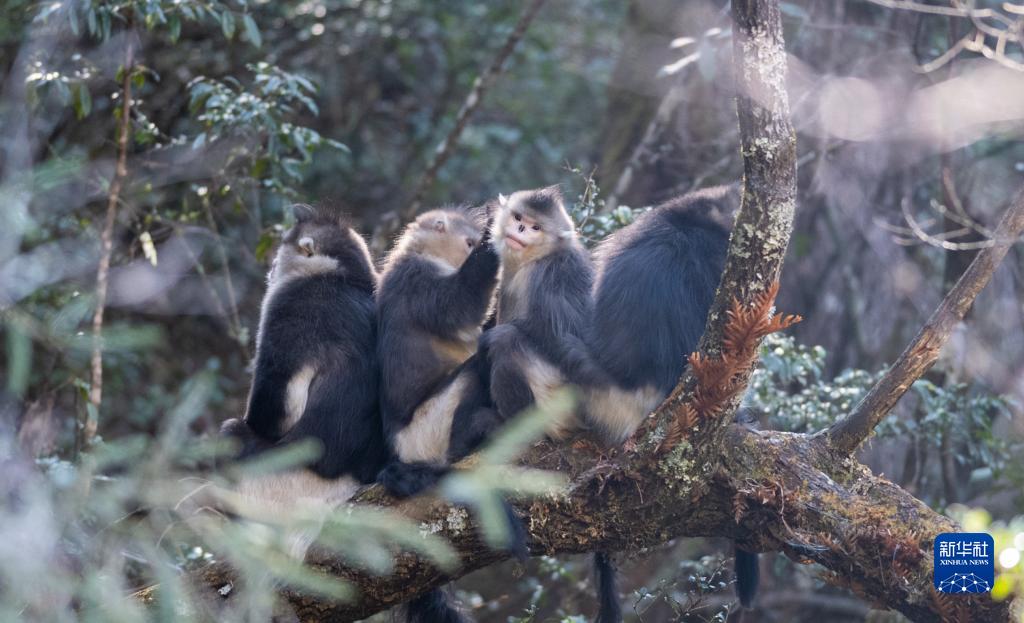 這是在云南白馬雪山國家級自然保護區內拍攝的滇金絲猴(3月13日攝)。新華社記者 王冠森 攝