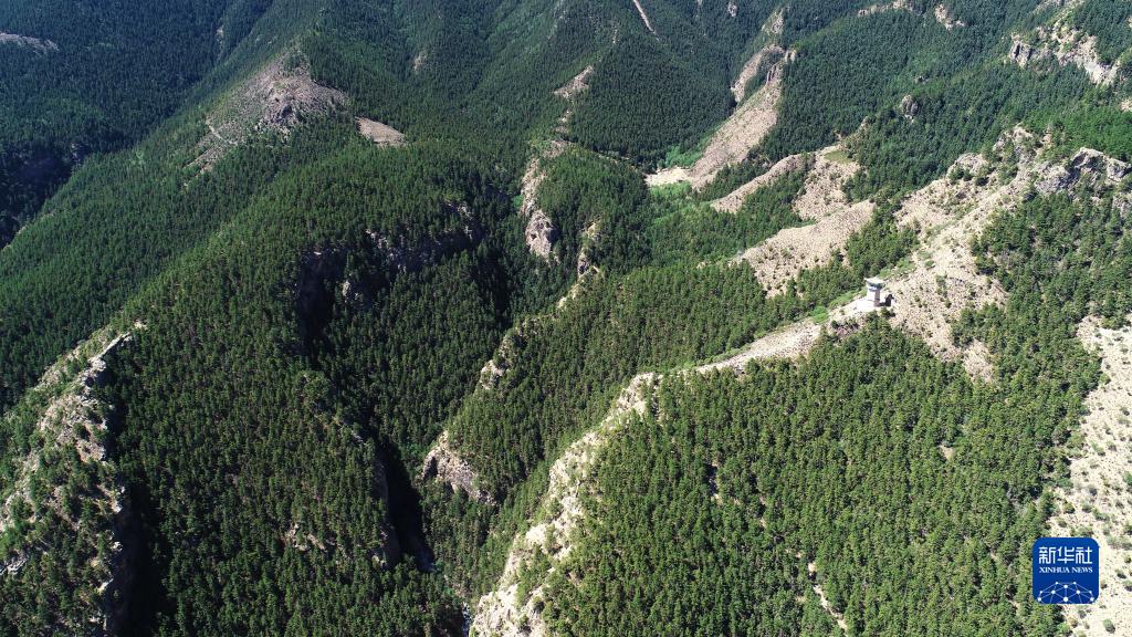 這是綠意盎然的賀蘭山蘇峪口國家森林公園(無人機照片,6月14日攝)。新華社記者 王鵬 攝