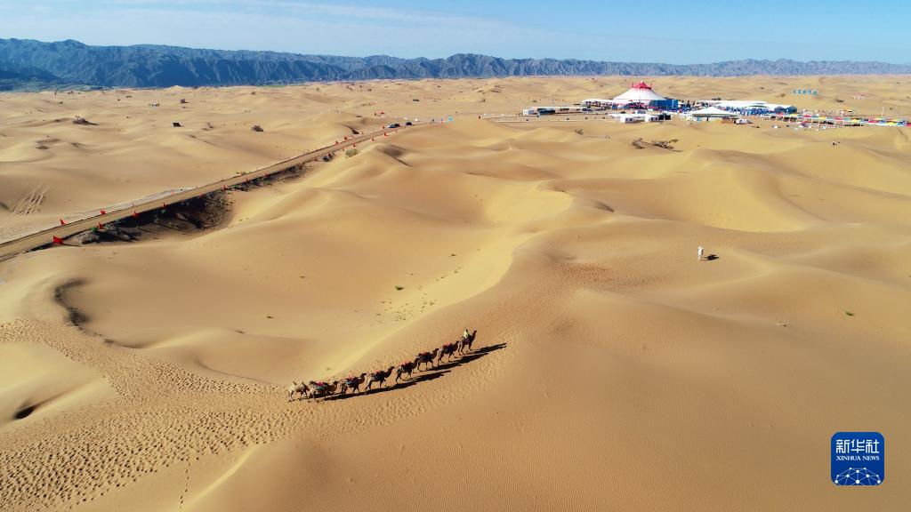 這是在寧夏中衛市拍攝的騰格里沙漠(無人機照片,2018年9月7日攝)。新華社記者 王鵬 攝