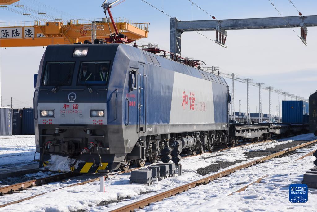 在新疆烏魯木齊,一列中歐班列緩緩駛離中歐班列烏魯木齊集結中心開往土耳其(2020年2月20日攝)。新華社記者 丁磊 攝