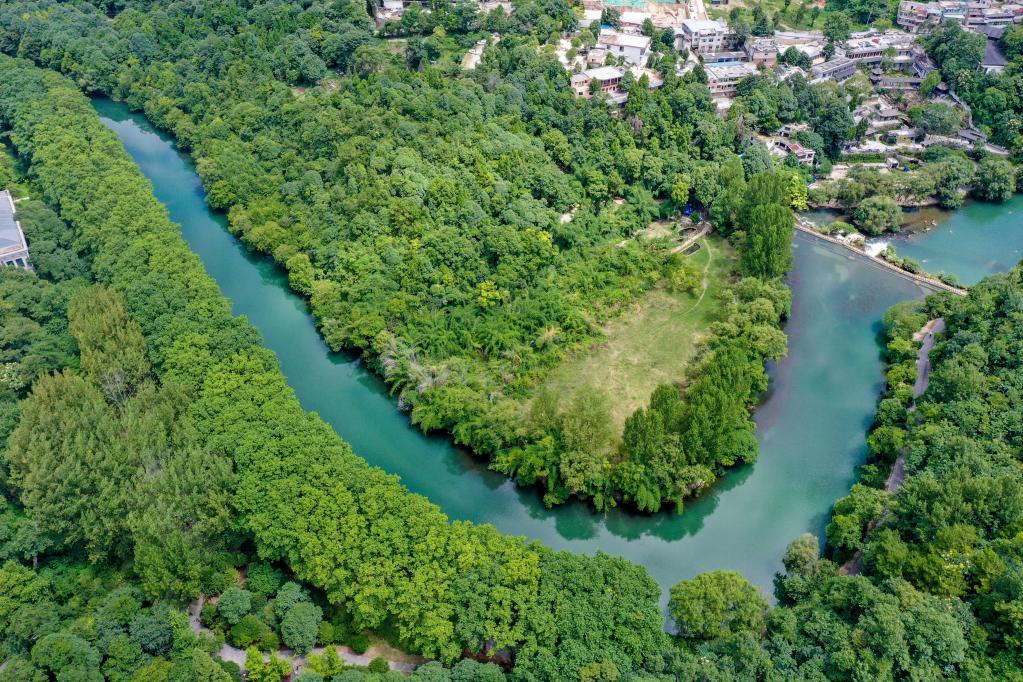 貴陽市花溪國家城市濕地公園黃金大道(2022年7月9日攝,無人機(jī)照片)。新華社記者 歐東衢 攝