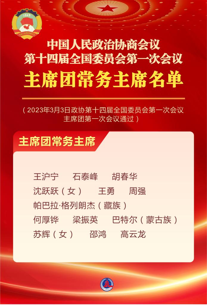 (2023年3月3日政協(xié)第十四屆全國委員會第一次會議主席團第一次會議通過)