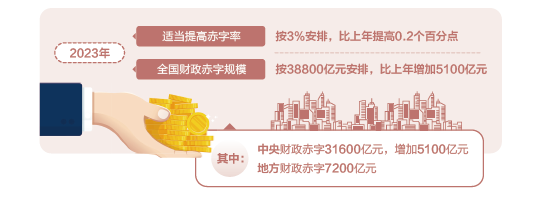 2023年,我國適當提高赤字率,保持必要支出力度,發揮財政逆周期調節作用,有利于提振市場信心。同時,赤字率不超過3%,有利于防范政府債務風險,為應對新的困難挑戰預留政策空間。