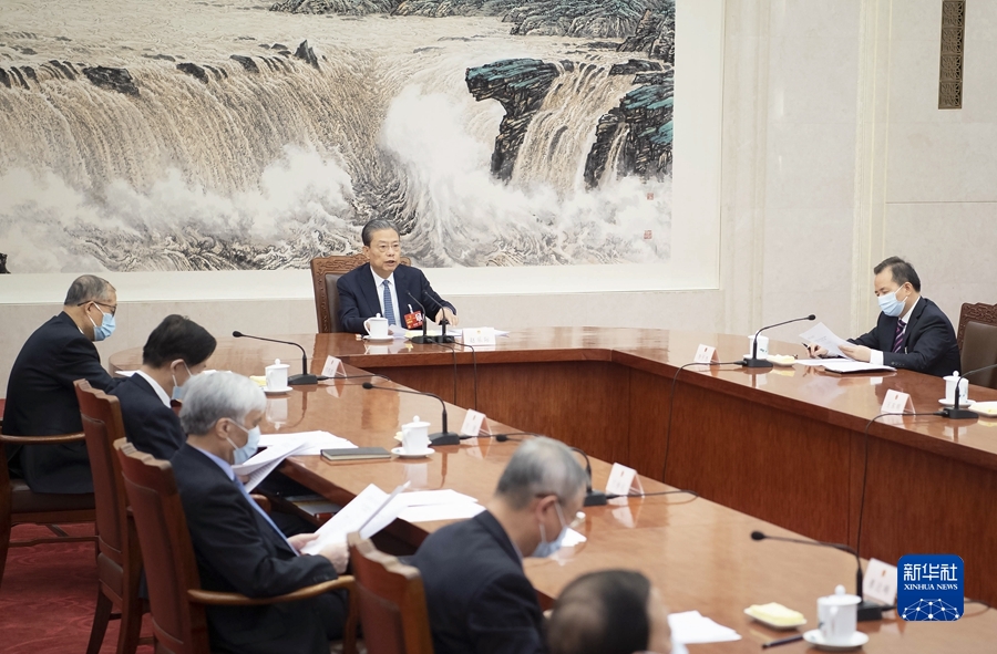 3月9日上午,十四屆全國人大一次會議主席團常務主席第三次會議在北京人民大會堂舉行。大會主席團常務主席趙樂際主持會議。新華社記者 李濤 攝