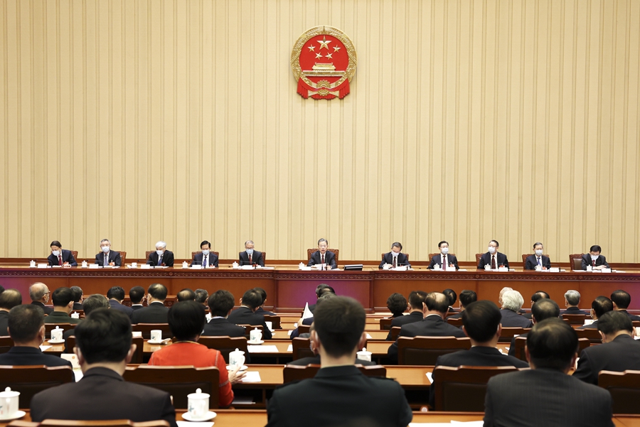 3月10日上午,十四屆全國人大一次會議主席團在北京人民大會堂舉行第五次會議。主席團常務主席趙樂際主持會議。新華社記者 龐興雷 攝