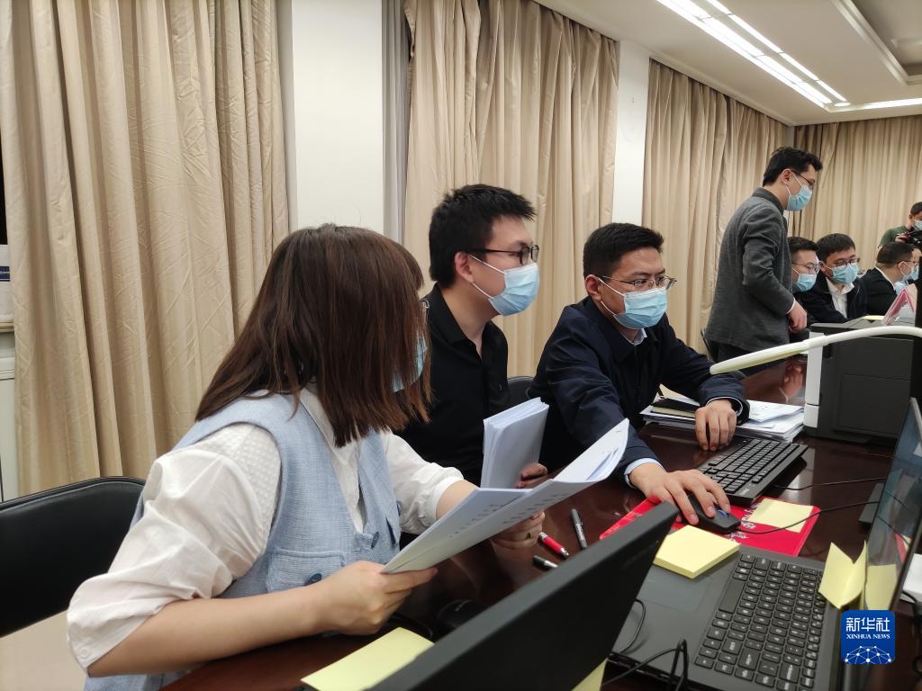 3月5日晚,國務院辦公廳工作專班工作人員在認真梳理匯總代表委員意見建議。新華社記者 姚均芳 攝