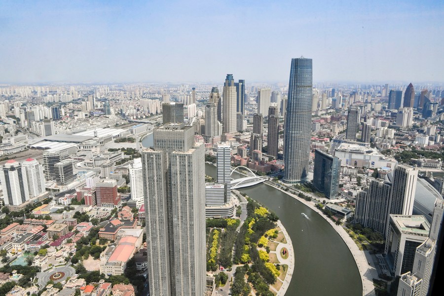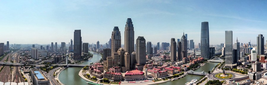 6月24日拍攝的天津海河沿線城市景觀(無人機照片)。新華社記者 孫凡越 攝