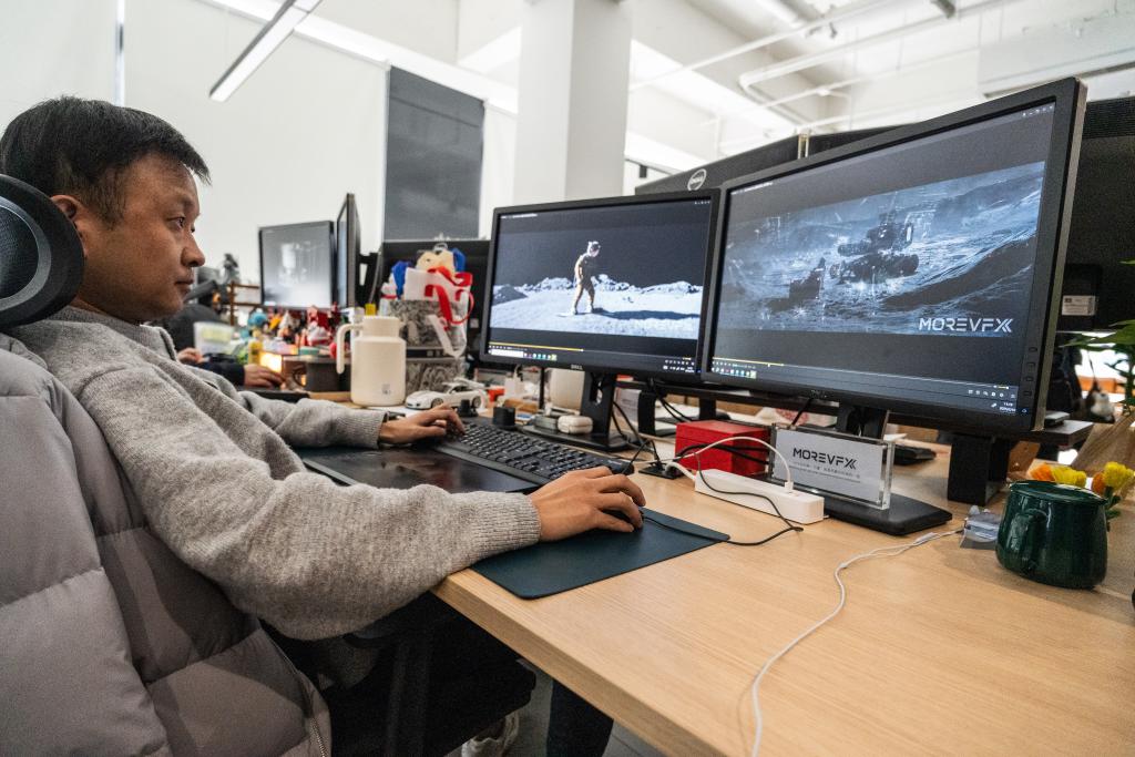 距離可可豆動畫僅百米之遙的墨境天合成都數(shù)字圖像科技有限公司在業(yè)內頗有名氣,除《哪吒2》外,還曾參與《流浪地球》等多部電影的后期制作。公司視效總監(jiān)邢明禮告訴記者,團隊主要負責《哪吒2》中“哪吒撕裂重生”等場景的上百個鏡頭特效。“導演對每一個細節(jié)都要求很高,原本預計三四個月完成,最終完成項目花了11個月。”