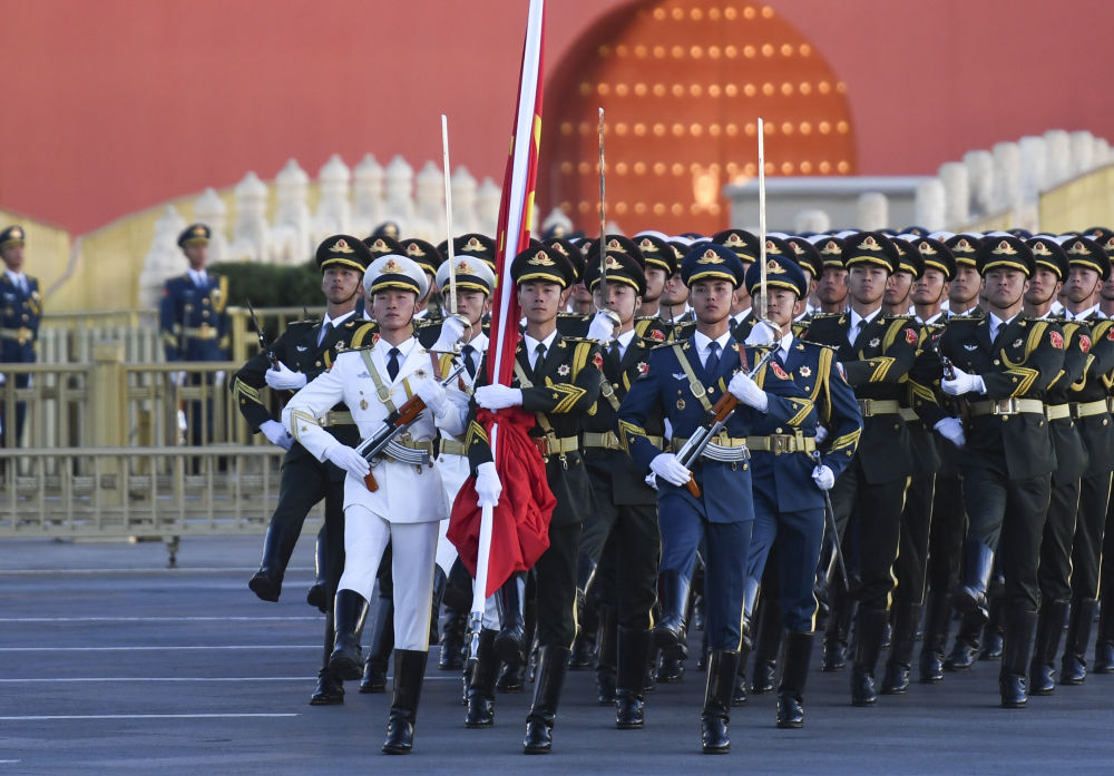 10月1日清晨,隆重的升國旗儀式在北京天安門廣場舉行,慶祝中華人民共和國成立74周年。新華社記者 鞠煥宗 攝