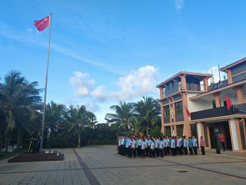 在我國最南端的地級市海南省三沙市,一曲《歌唱祖國》響徹在七連嶼趙述島上。7時24分,島上的工作人員、漁民列隊肅立、高唱國歌,五星紅旗在碧海藍天的映襯下迎風飄揚。