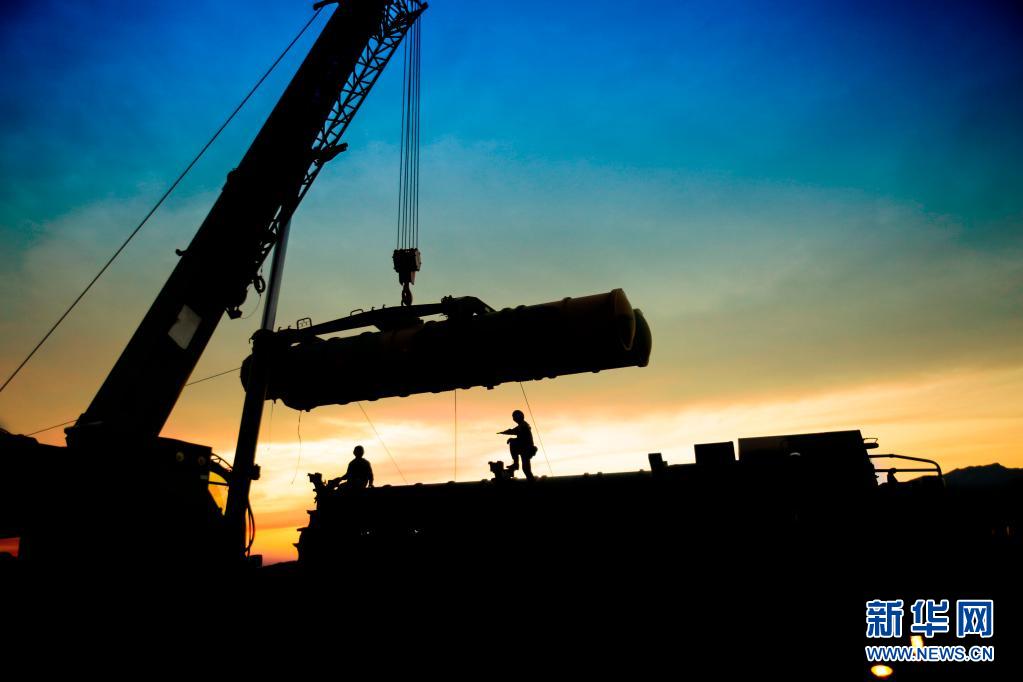 中部戰區空軍地空導彈某旅“英雄營”組織導彈吊裝(2016年6月17日攝)。新華社發(朱姜海 攝)
