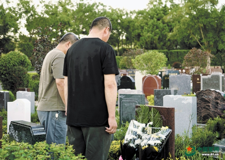 “張伯伯,我是王青軍的兒子!這么多年,我終于找到您了!”天空飄著蒙蒙細(xì)雨,在帽山公墓的一座墳塋前,王子軒深深鞠躬,聲音哽咽。張正立上前拍拍王子軒的肩膀,兩位老兵后代緊緊相擁。這一遲到多年的相聚,將兩位沒有血緣關(guān)系的中年人緊緊連在一起。張正立告訴筆者,他當(dāng)過5年兵,父親張宇也時常念叨戰(zhàn)友王青軍,臨終前還囑咐他有機會代他去找找戰(zhàn)友。
