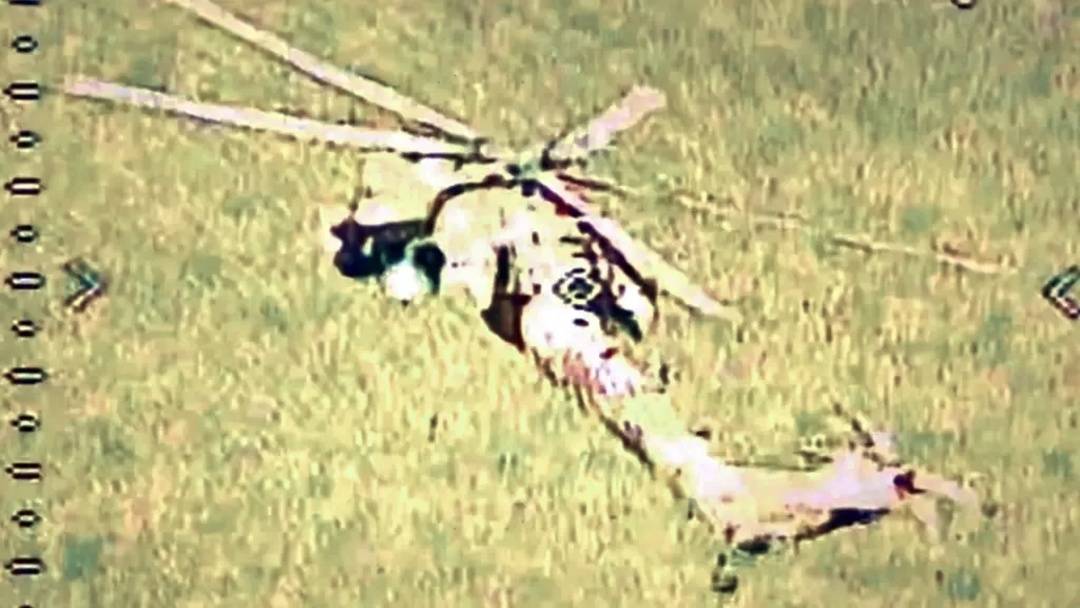 俄羅斯米-28武裝直升機(jī)在被烏克蘭FPV無人機(jī)擊中前。