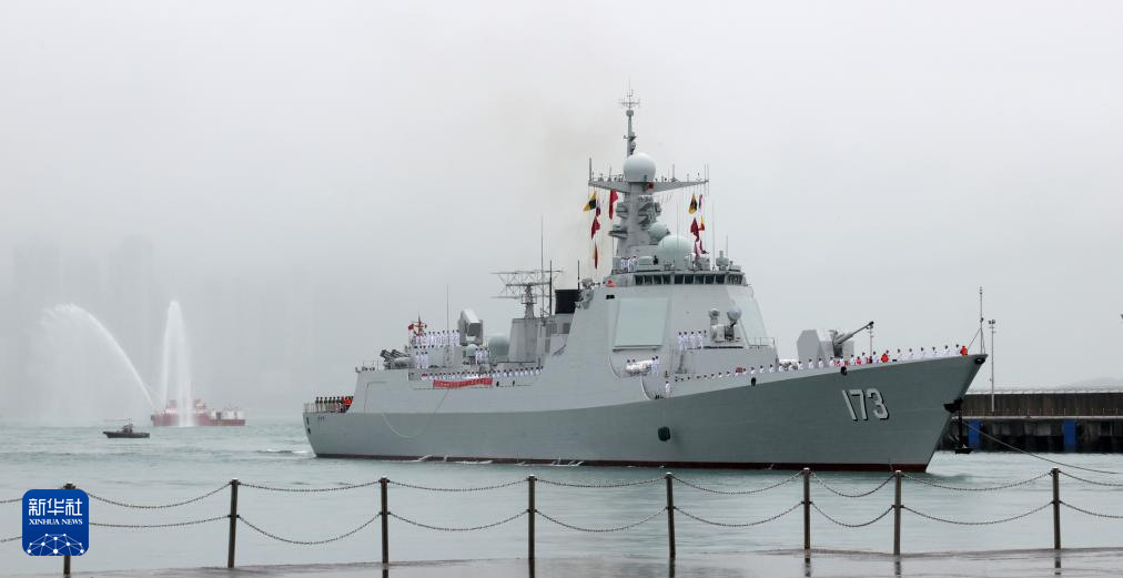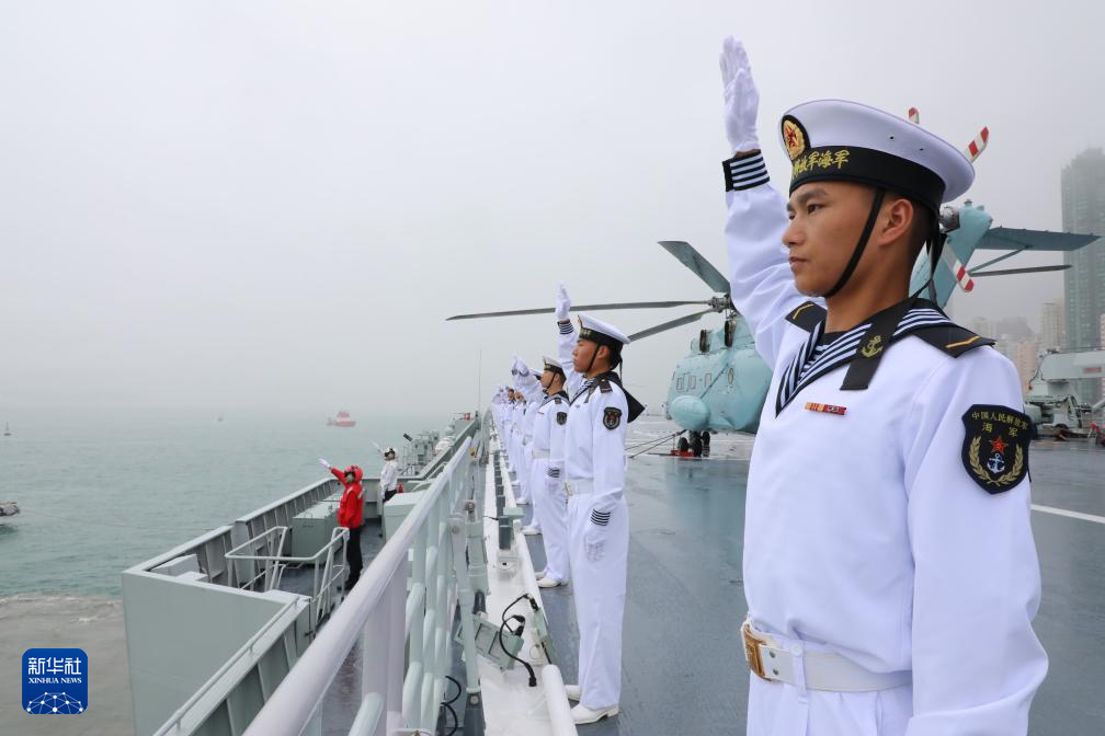 香港特別行政區(qū)行政長官李家超及特區(qū)政府官員、中央駐港機構主要領導、南部戰(zhàn)區(qū)領導、駐香港部隊領導以及有關方面代表出席在昂船洲軍港碼頭舉行的歡迎儀式。