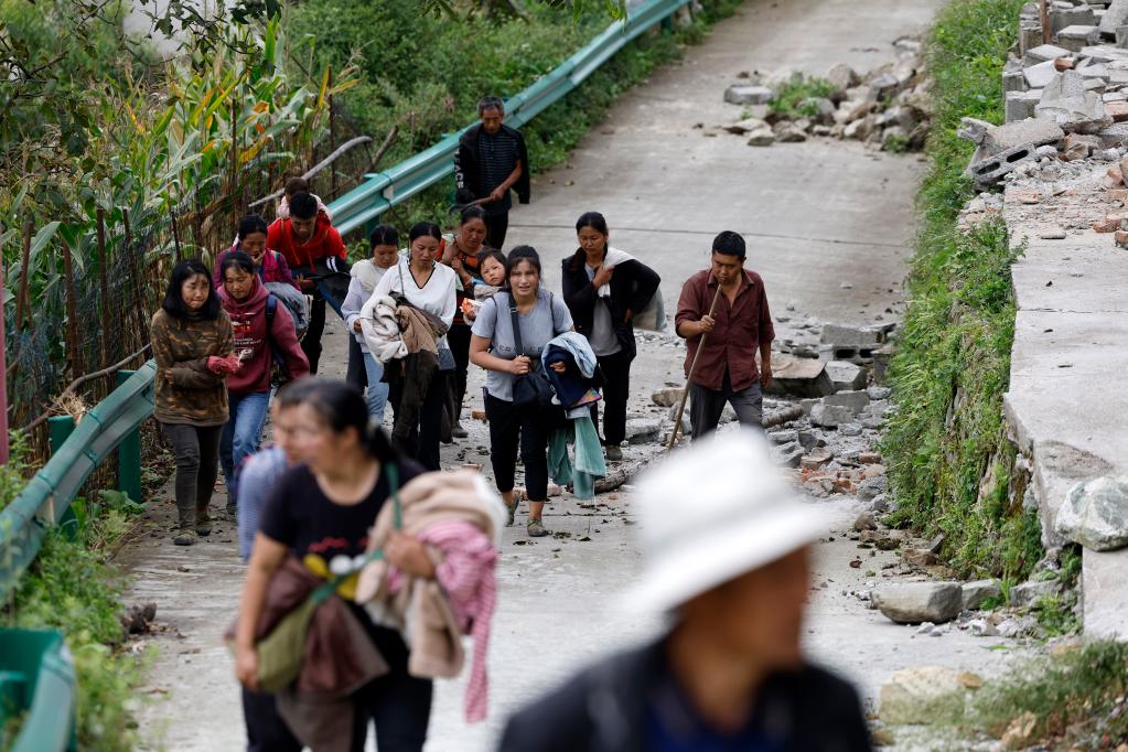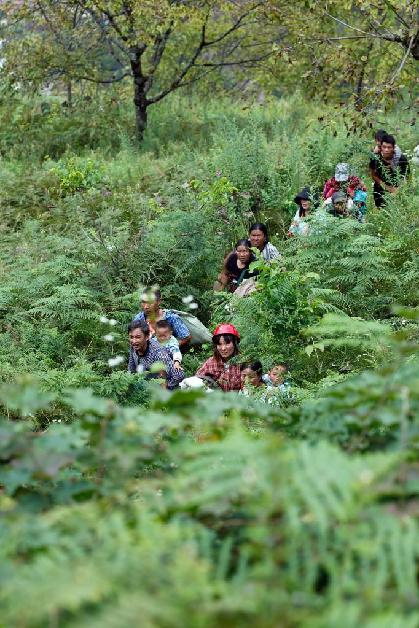 9月6日,得妥鎮灣東村村民正在向外轉移。新華社記者 沈伯韓 攝