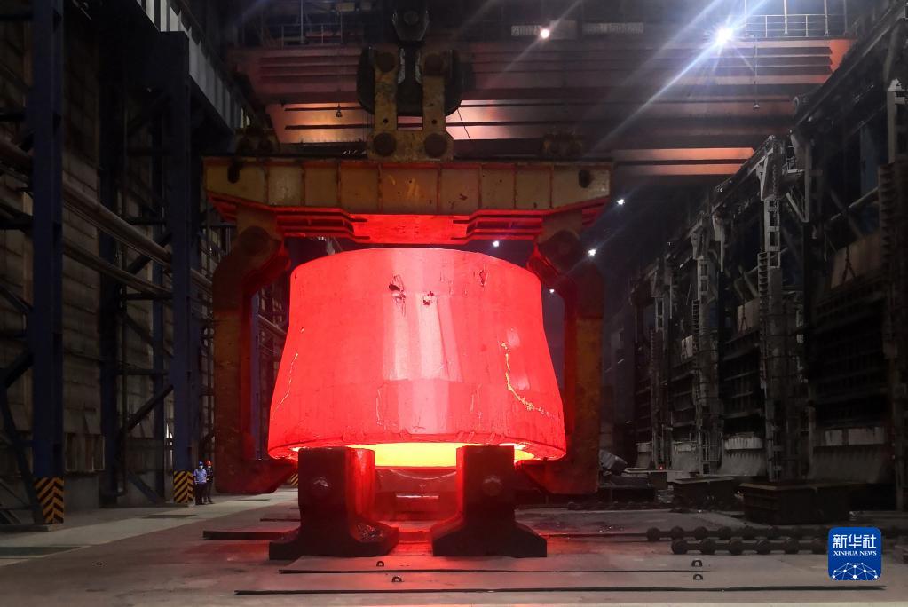 中國一重制造的世界最大異形加氫筒體鍛件(2022年8月30日攝)。新華社發(劉凱泉 攝)