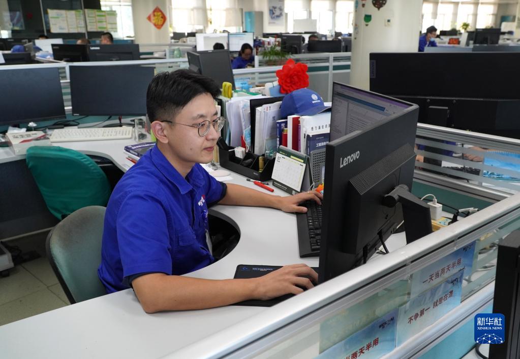 在山東省濰坊市,濰柴集團25歲的工程師付萬鑫在工作中(9月19日攝)。新華社記者 徐速繪 攝