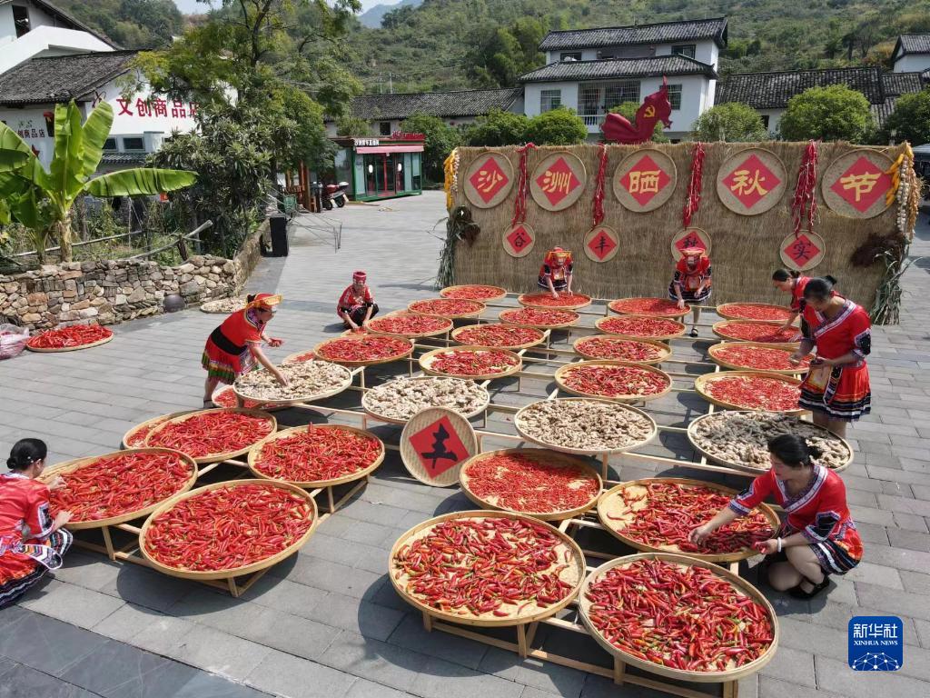 這是在湖南省郴州市汝城縣沙洲瑤族村拍攝的曬秋節現場(2022年9月15日攝)。新華社發(朱勇剛 攝)
