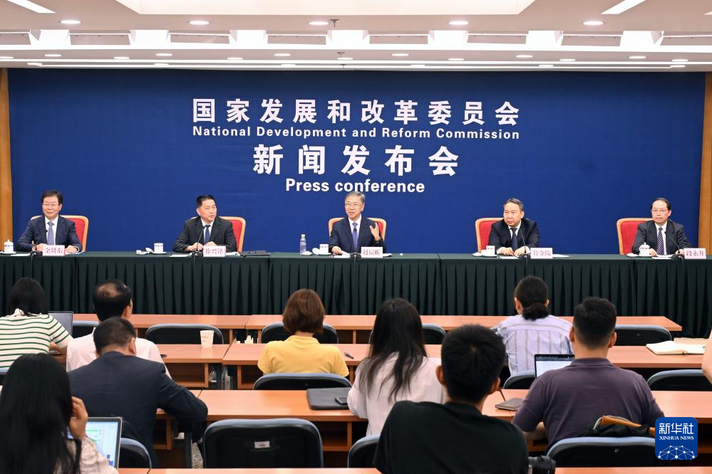 7月25日,國家發展改革委在北京舉行專題新聞發布會,介紹《關于加力支持大規模設備更新和消費品以舊換新的若干措施》有關情況。新華社發(高弘杰攝)