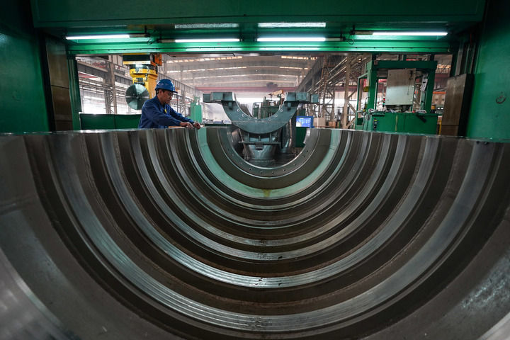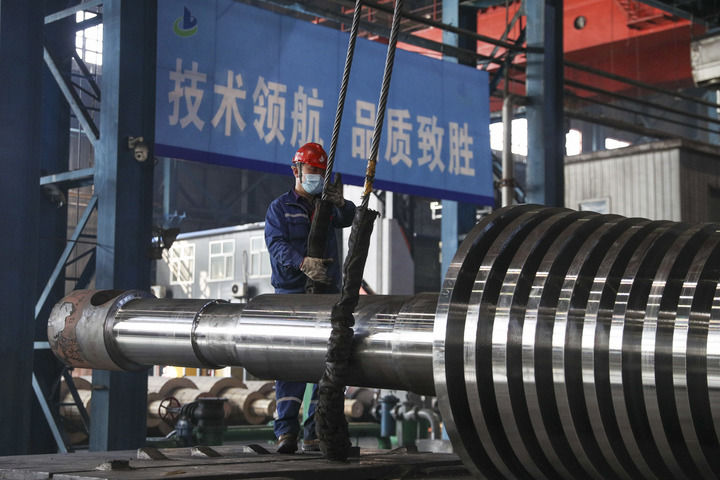 工人在位于黑龍江省齊齊哈爾市的中國一重集團有限公司生產車間運送產品(2024年3月5日攝)。新華社記者 張濤 攝