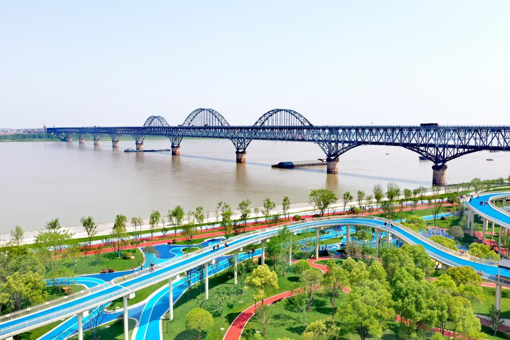 這是九江市長江國家文化公園(九江段)和九江長江大橋。新華社發(王浩攝)