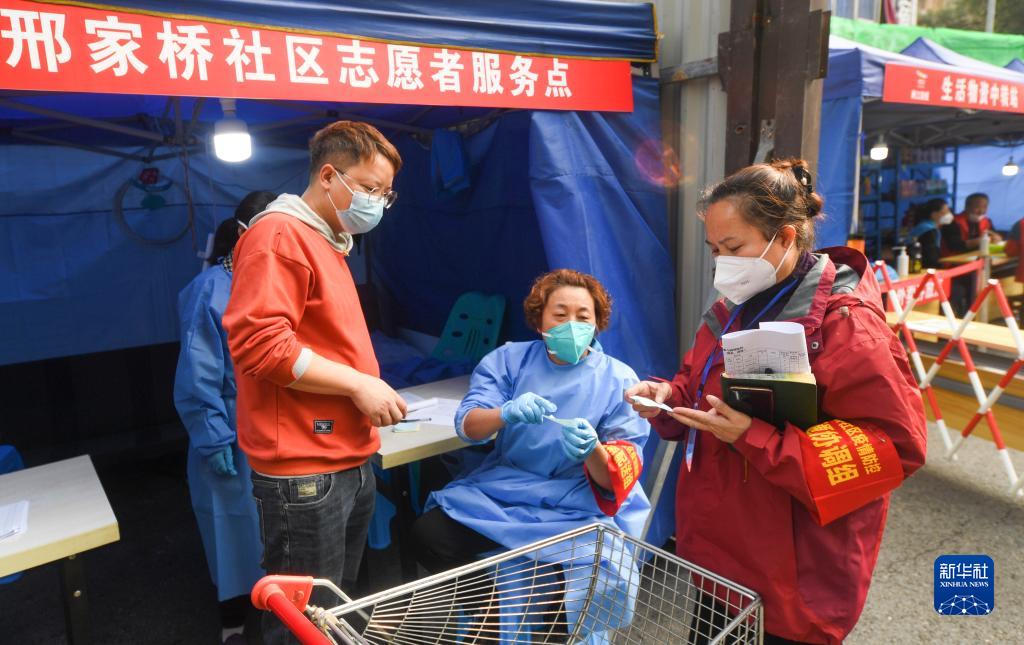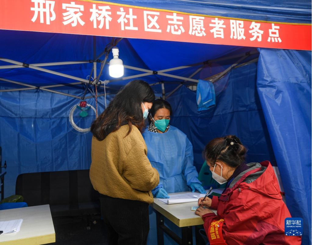 11月27日,謝蘭(右一)在邢家橋社區登記居民的買菜需求。新華社記者 王全超 攝