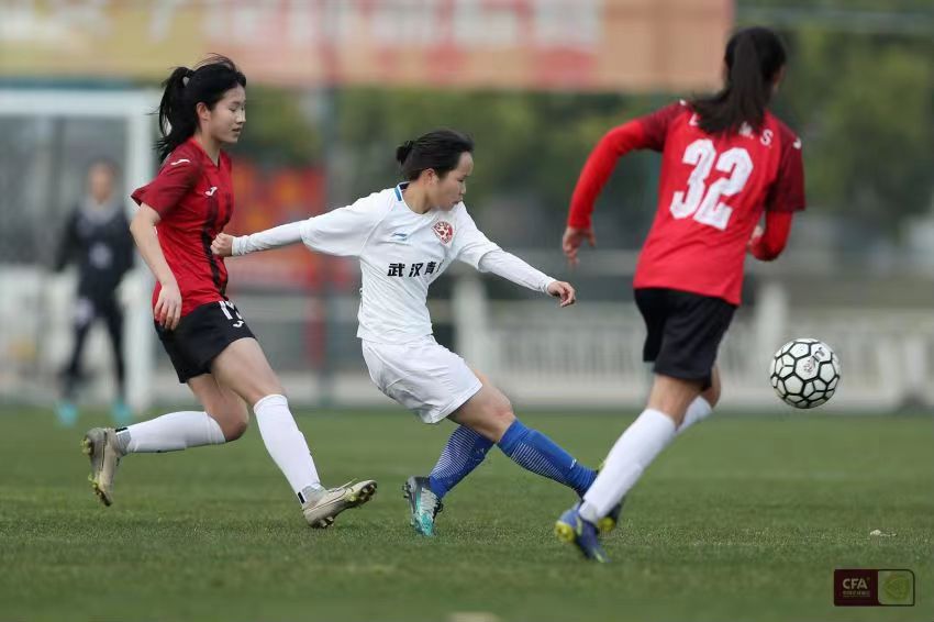 武漢青山武體與廣東省女足在比賽中。中國足協供圖