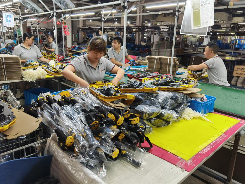 新華社寧波9月3日電(記者顧小立、邱世杰)走進浙江省寧波市寧海縣深甽鎮興達旅游用品有限公司的生產車間,剛被搬下流水線的運動杖在操作臺上堆得滿滿當當,工人們正在進行最后的組裝檢查,將所有貨品打包完成后,發往客戶手中。興達公司行政經理劉文告訴記者,隨著亞運腳步的日益臨近,公司上下也都忙碌了起來。“今年我們拓展市場努力的效果還不錯,訂單量較為可觀。”