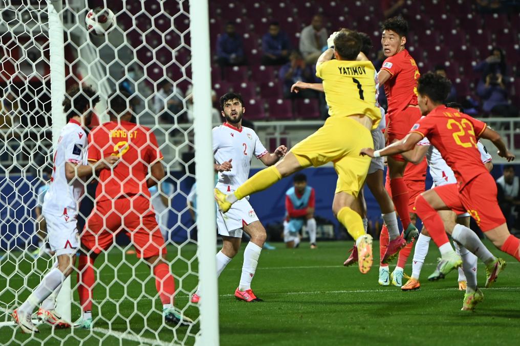 新華社多哈11月13日電(記者肖世堯、公兵、岳東興)在13日進行的卡塔爾男足亞洲杯A組首輪比賽中,中國男足0:0戰平塔吉克斯坦隊。下半場第80分鐘,中國隊在角球進攻中由朱辰杰頭球破門,但這粒進球因越位犯規被視頻助理裁判(VAR)取消。