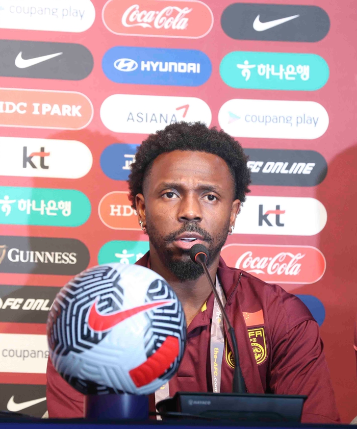 6月10日,中國隊球員費南多在發布會上回答提問。新華社記者 姚琪琳 攝