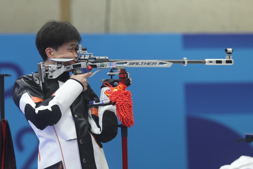 這是劉宇坤第一次參加奧運會比賽。在此前一天進行的資格賽中,他也發揮穩健,以第一名的成績晉級決賽。決賽開始后,劉宇坤繼續穩定發揮,在跪姿和臥姿各15槍之后排名第二。