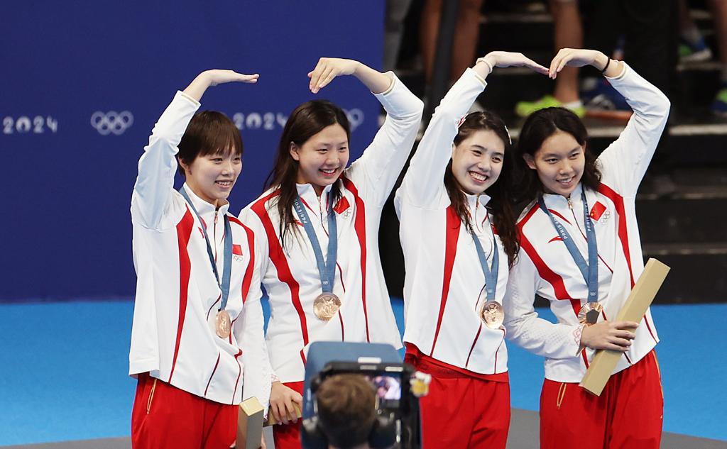 新華社巴黎8月4日電(記者劉旸、夏亮)巴黎奧運會游泳項目4日迎來最后一個比賽日,中國隊打破美國長達40年的壟斷,拿下男子4X100米混合泳接力金牌;張雨霏在個人和接力兩項比賽中再奪兩銅,把中國游泳運動員個人奧運獎牌總數的紀錄提高到10枚。