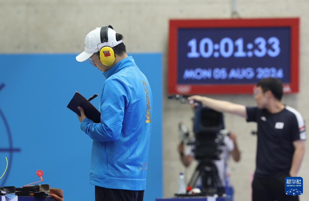 8月5日,中國選手李越宏在比賽間隙記錄。新華社記者 張帆 攝