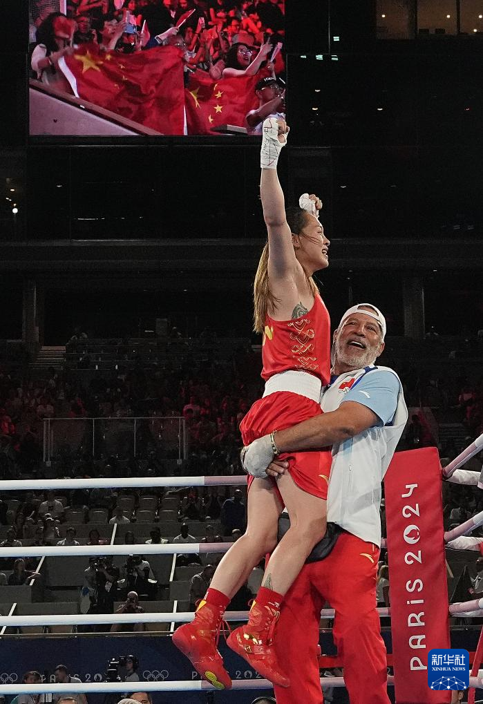 8月8日,常園慶祝奪冠。新華社發(POOL照片/莫羅·皮芒泰爾)