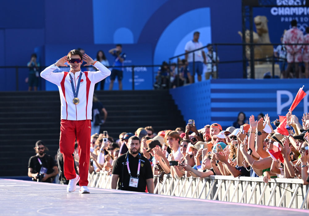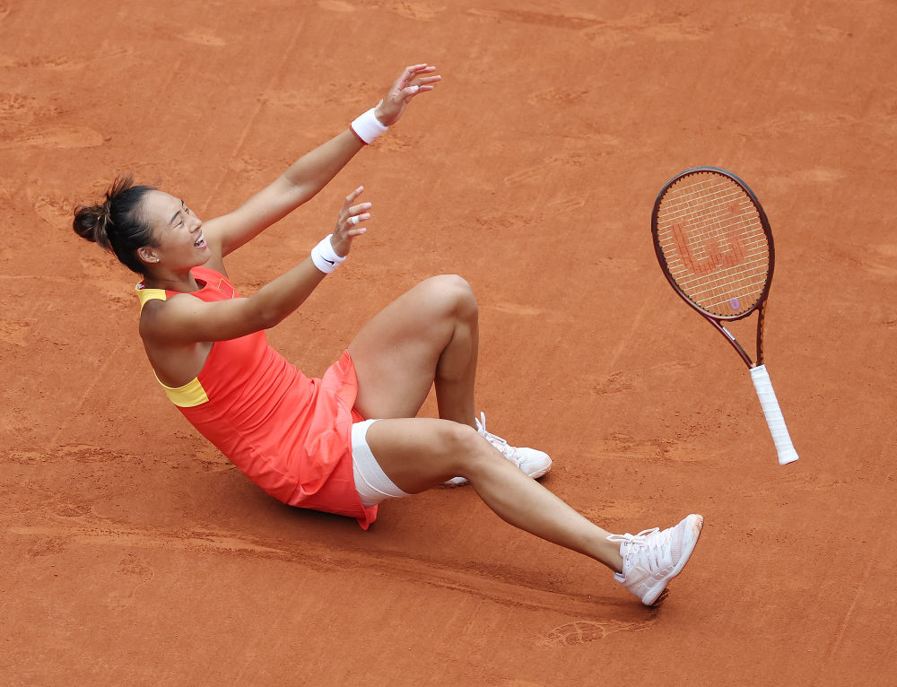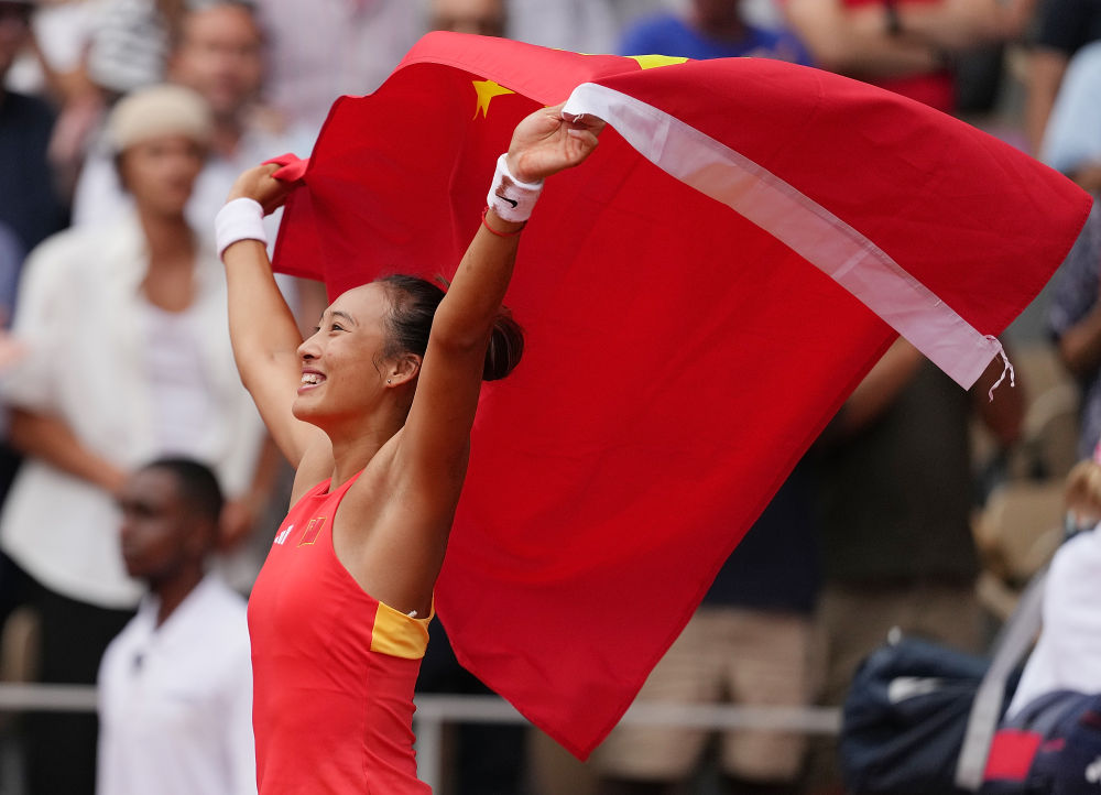 ↑8月3日,鄭欽文奪得網(wǎng)球女子單打金牌,成為第一位站上該項目奧運會最高領(lǐng)獎臺的亞洲運動員。