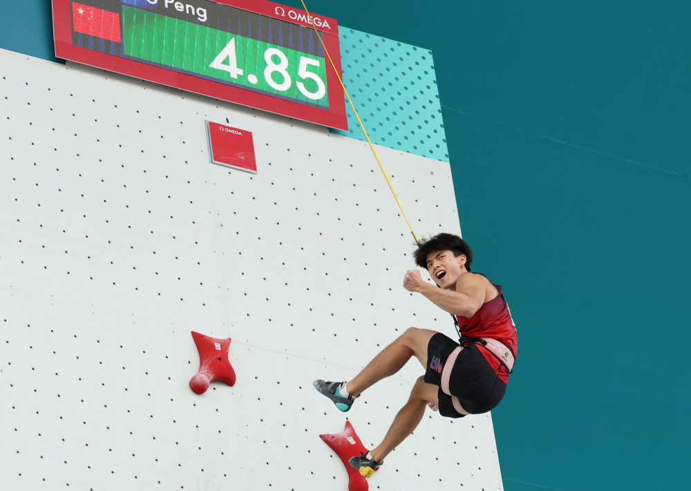 ↑8月8日,伍鵬奪得攀巖男子速度賽銀牌。這是中國攀巖隊首次奪得男子項目的奧運獎牌。
