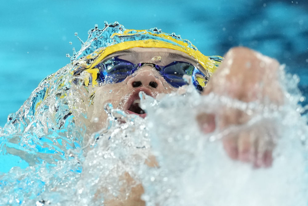 ↑7月31日,潘展樂(右二)在男子100米自由泳決賽中率先觸線,以46秒40的成績奪冠,并打破世界紀錄。